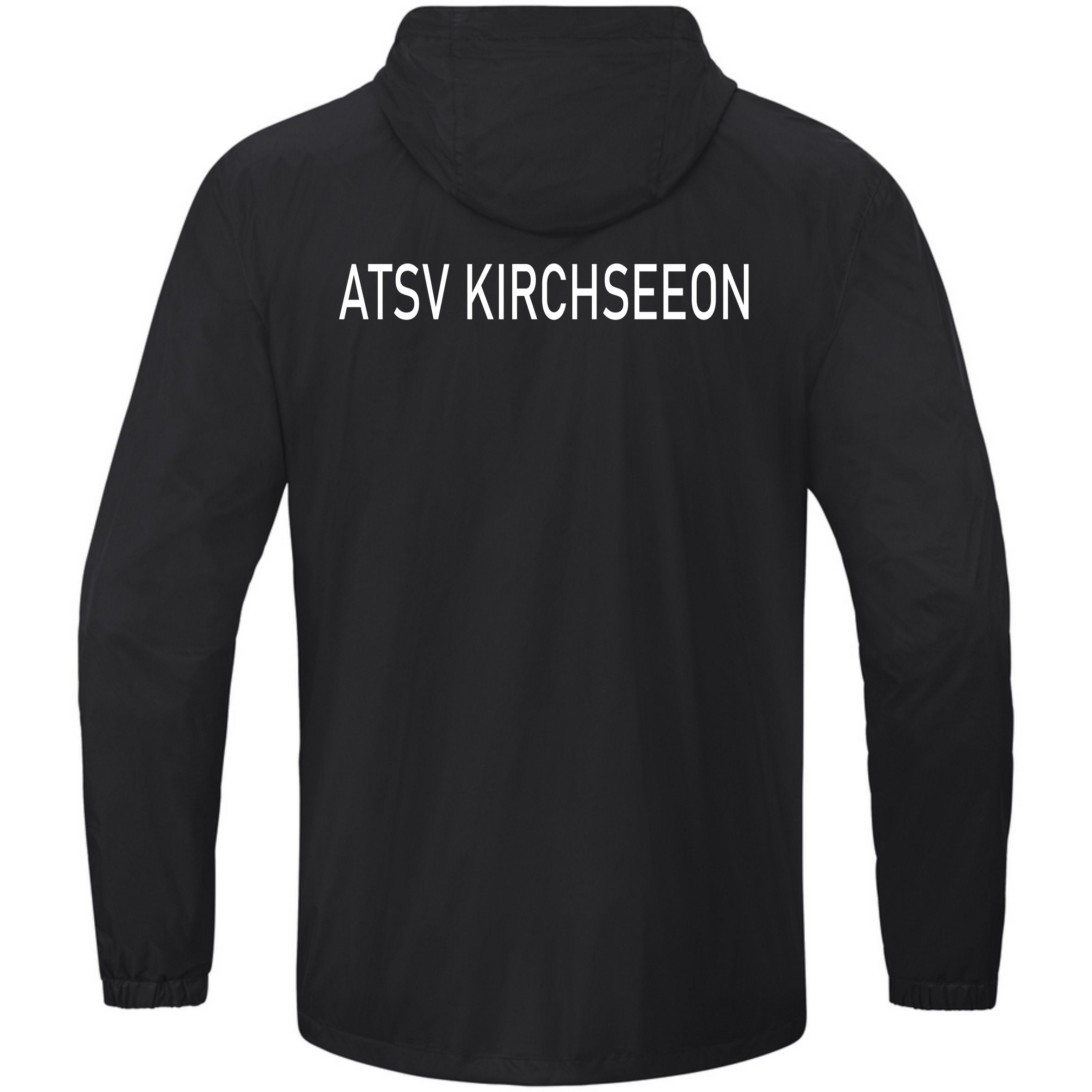 Regenjacke mit Vereinslogo auf der Brust und Vereinsname am Rücken. Auf Wunsch mit Initialen.